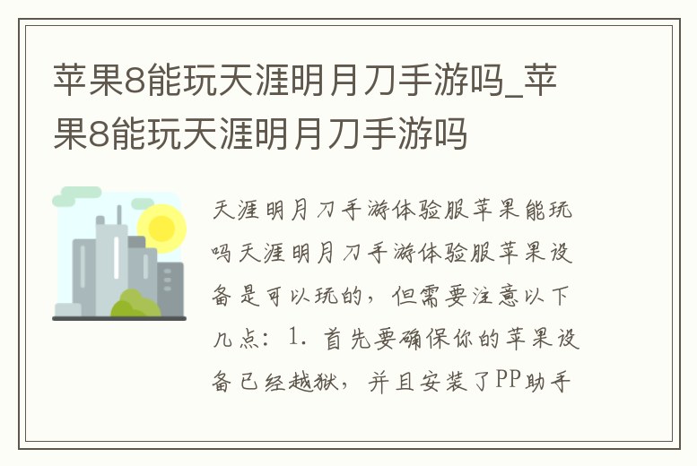 蘋果8能玩天涯明月刀手游嗎_蘋果8能玩天涯明月刀手游嗎