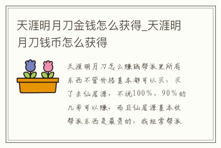 天涯明月刀金錢怎么獲得_天涯明月刀錢幣怎么獲得