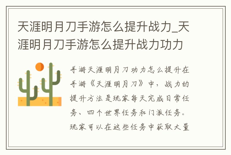 天涯明月刀手游怎么提升戰力_天涯明月刀手游怎么提升戰力功力