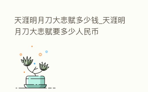 天涯明月刀大悲賦多少錢_天涯明月刀大悲賦要多少人民幣