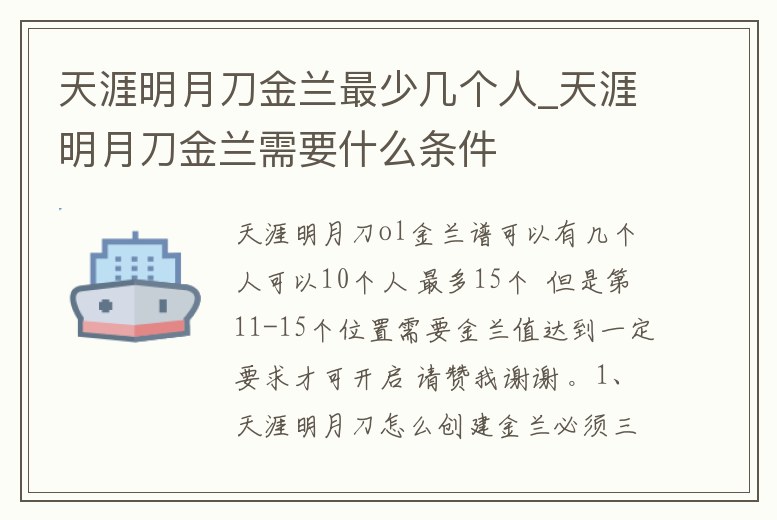 天涯明月刀金蘭最少幾個人_天涯明月刀金蘭需要什么條件