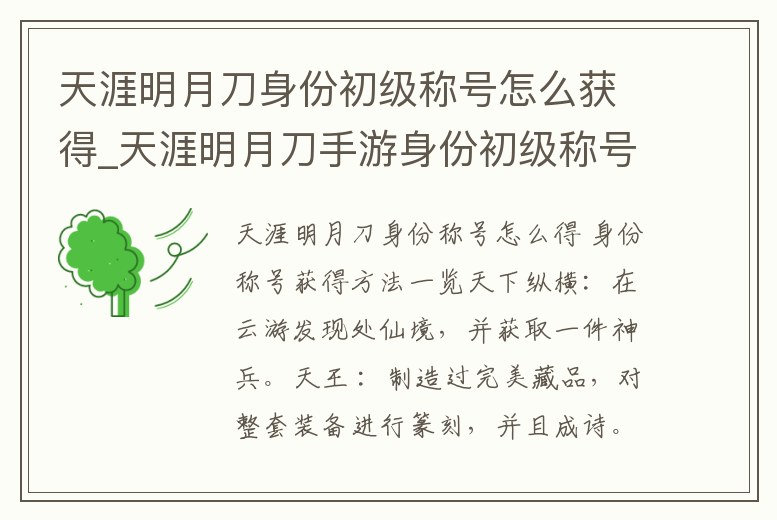天涯明月刀身份初級稱號怎么獲得_天涯明月刀手游身份初級稱號怎么獲得