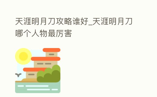 天涯明月刀攻略誰好_天涯明月刀哪個人物最厲害