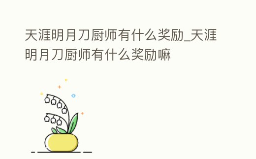 天涯明月刀廚師有什么獎勵_天涯明月刀廚師有什么獎勵嘛