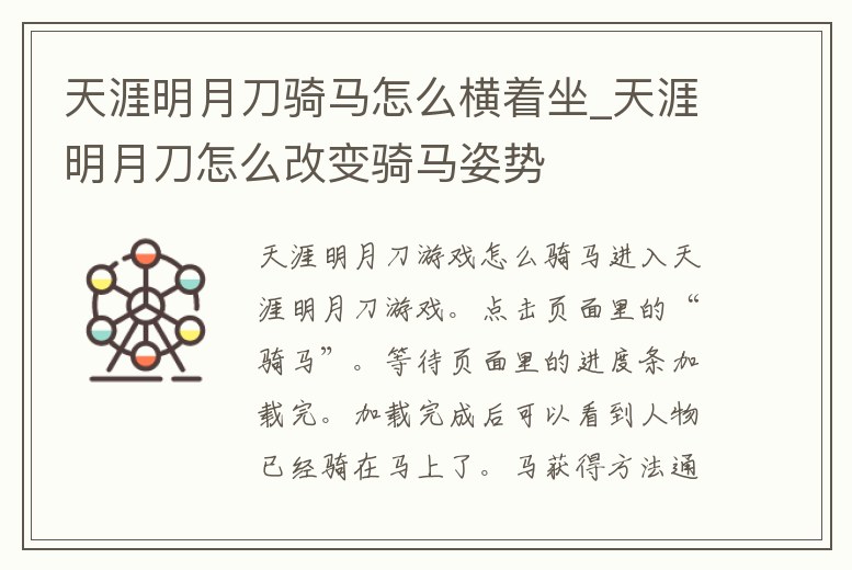天涯明月刀騎馬怎么橫著坐_天涯明月刀怎么改變騎馬姿勢