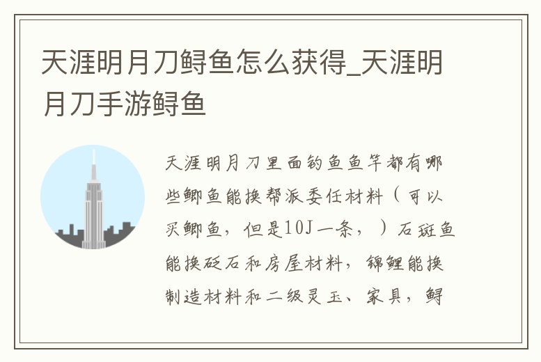 天涯明月刀鱘魚怎么獲得_天涯明月刀手游鱘魚