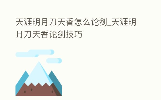 天涯明月刀天香怎么論劍_天涯明月刀天香論劍技巧