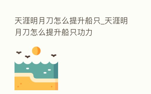 天涯明月刀怎么提升船只_天涯明月刀怎么提升船只功力