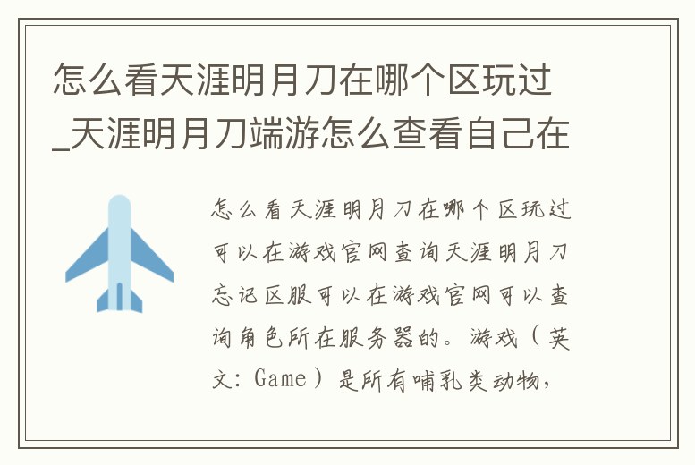 可以在游戲官網查詢天涯明月刀忘記區服可以在游戲官網可以查詢角色所在服務器的。游戲(英文: Game)是所有哺乳類動物,特別是靈長類動物學習生存的第一步。它是一種基于物質需求滿足之上的,在一些特定時間、空間范圍內遵循某。