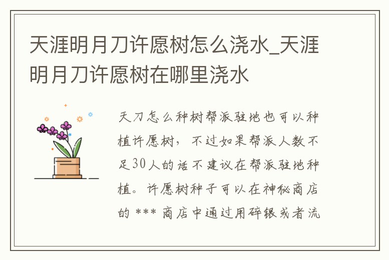 天涯明月刀許愿樹怎么澆水_天涯明月刀許愿樹在哪里澆水
