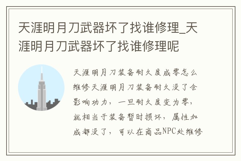 天涯明月刀武器壞了找誰修理_天涯明月刀武器壞了找誰修理呢