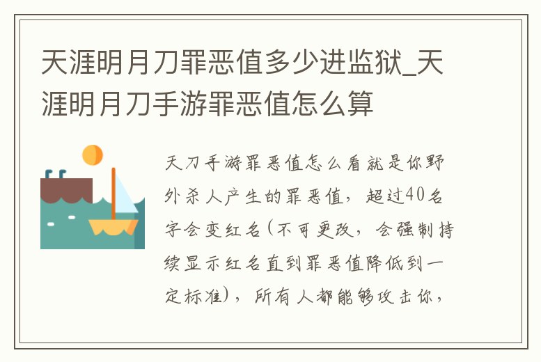 天涯明月刀罪惡值多少進監獄_天涯明月刀手游罪惡值怎么算
