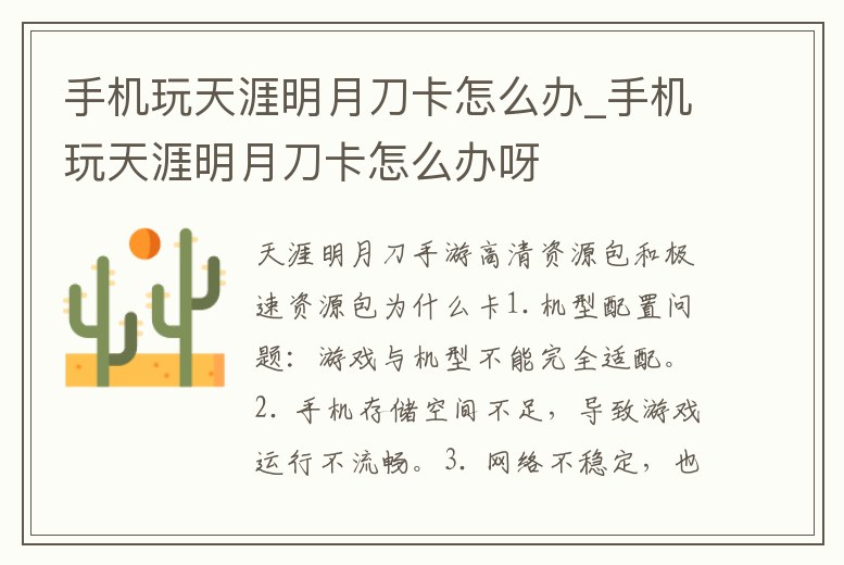 手機玩天涯明月刀卡怎么辦_手機玩天涯明月刀卡怎么辦呀