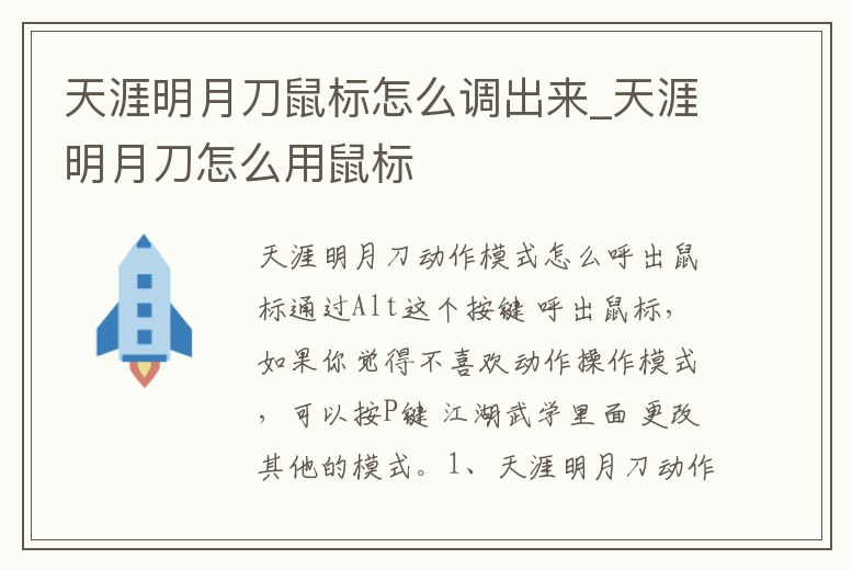 天涯明月刀動作模式怎么呼出鼠標