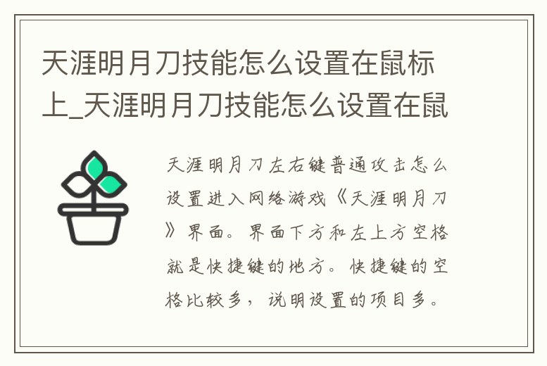 天涯明月刀技能怎么設置在鼠標上_天涯明月刀技能怎么設置在鼠標上移動