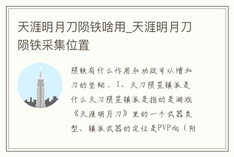 天涯明月刀隕鐵啥用_天涯明月刀隕鐵采集位置