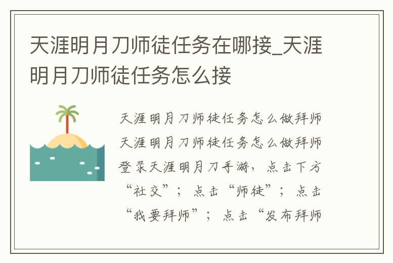天涯明月刀師徒任務在哪接_天涯明月刀師徒任務怎么接