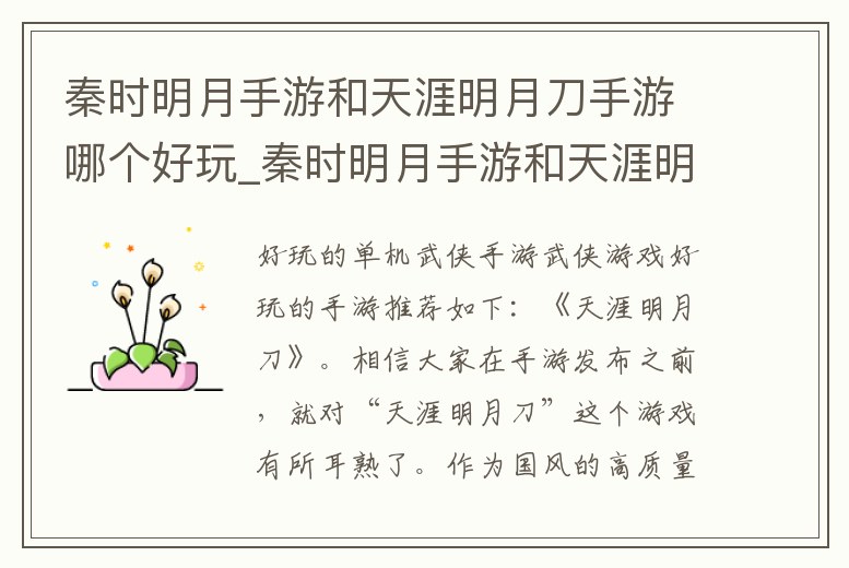 秦時明月手游和天涯明月刀手游哪個好玩_秦時明月手游和天涯明月刀手游哪個好玩一點
