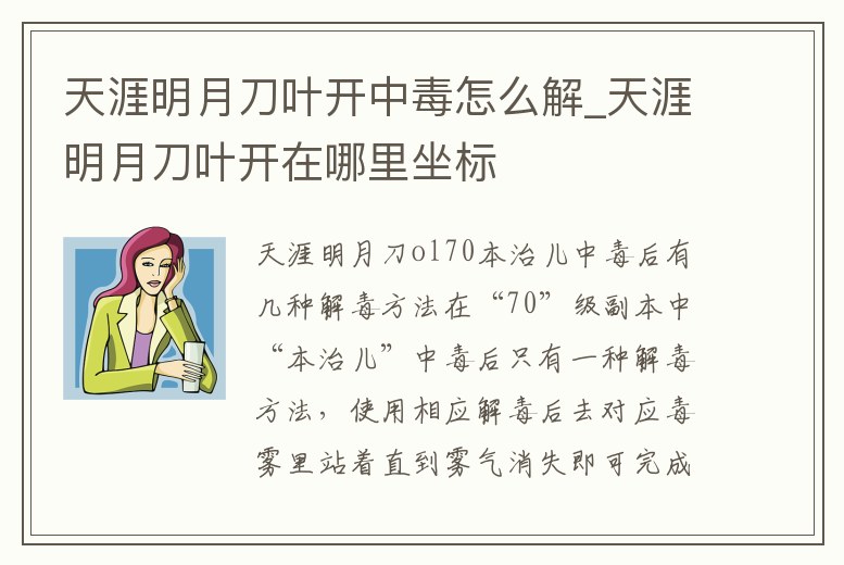 - 天涯明月刀葉開中毒怎么解_天涯明月刀葉開在哪里坐標(biāo)