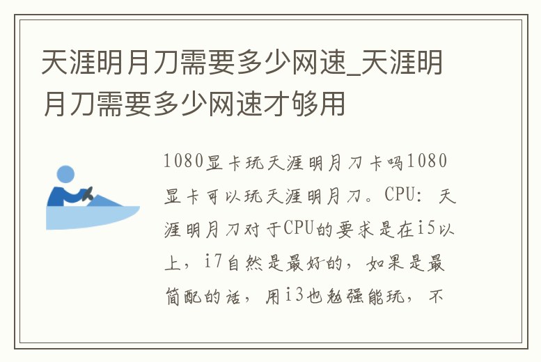 天涯明月刀需要多少網速_天涯明月刀需要多少網速才夠用