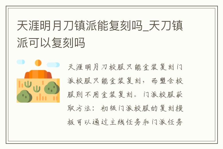 天涯明月刀鎮派能復刻嗎_天刀鎮派可以復刻嗎