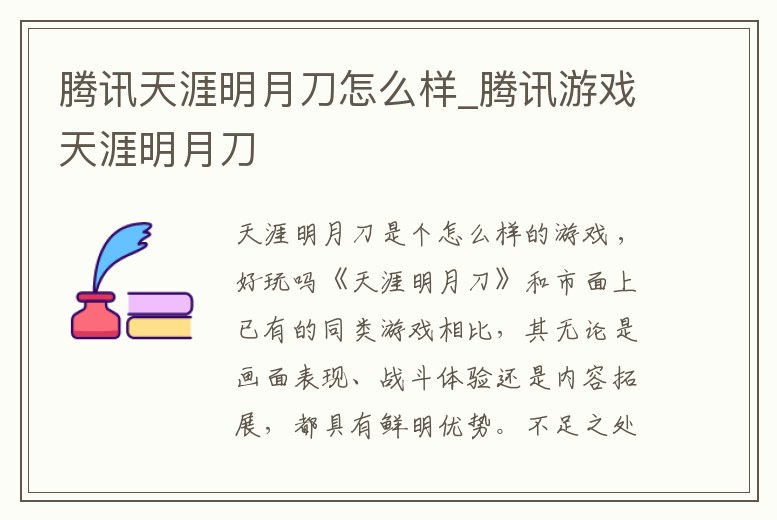 騰訊天涯明月刀怎么樣_騰訊游戲天涯明月刀