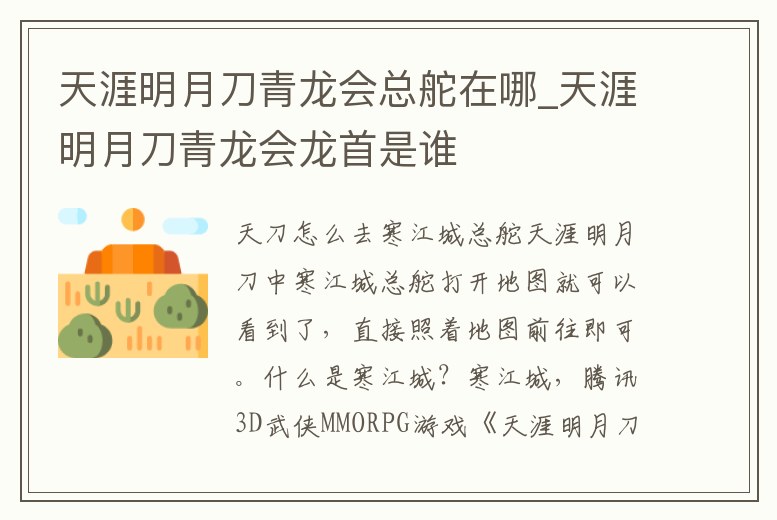 天涯明月刀青龍會總舵在哪_天涯明月刀青龍會龍首是誰