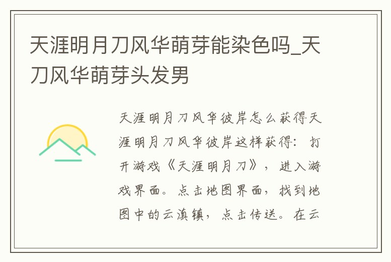 天涯明月刀風華萌芽能染色嗎_天刀風華萌芽頭發男