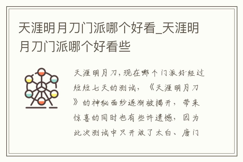 天涯明月刀門派哪個好看_天涯明月刀門派哪個好看些