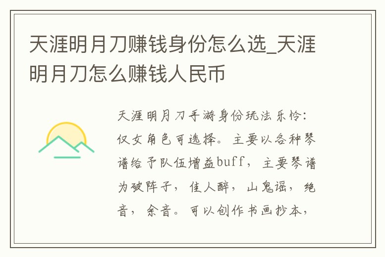 天涯明月刀賺錢身份怎么選_天涯明月刀怎么賺錢人民幣