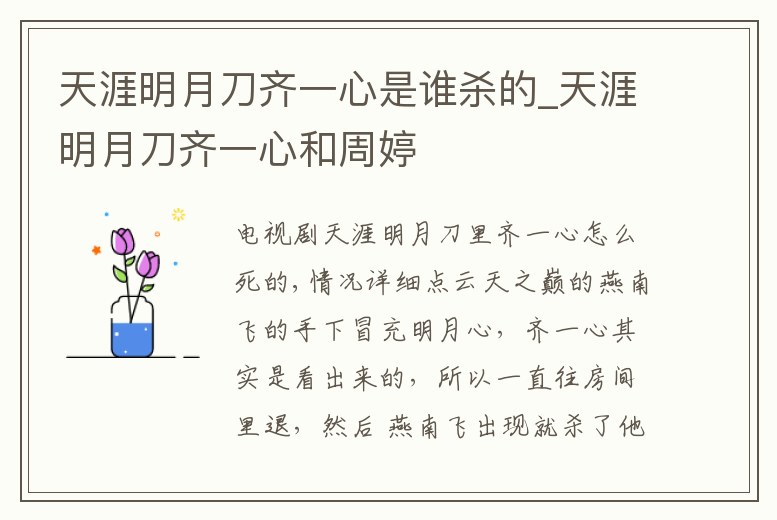 電視劇天涯明月刀里齊一心怎么死的,情況詳細點