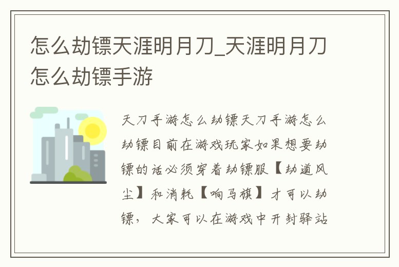 怎么劫鏢天涯明月刀_天涯明月刀怎么劫鏢手游