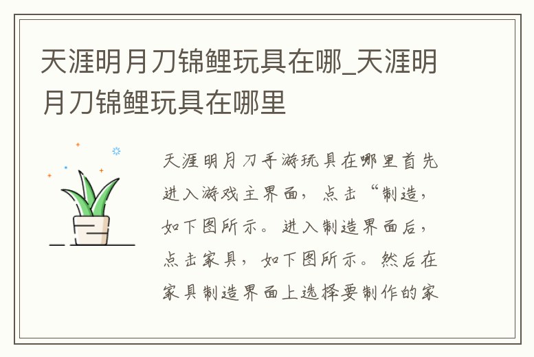 天涯明月刀錦鯉玩具在哪_天涯明月刀錦鯉玩具在哪里