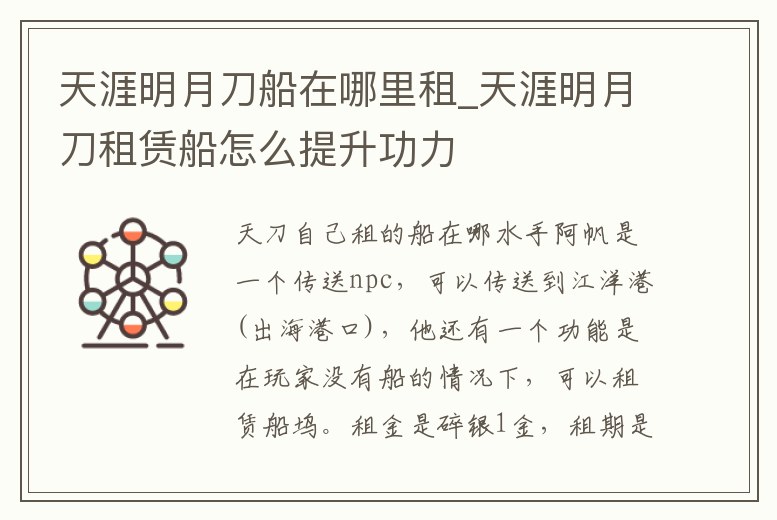 天涯明月刀船在哪里租_天涯明月刀租賃船怎么提升功力