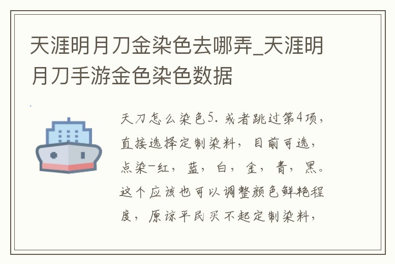 天涯明月刀金染色去哪弄_天涯明月刀手游金色染色數據
