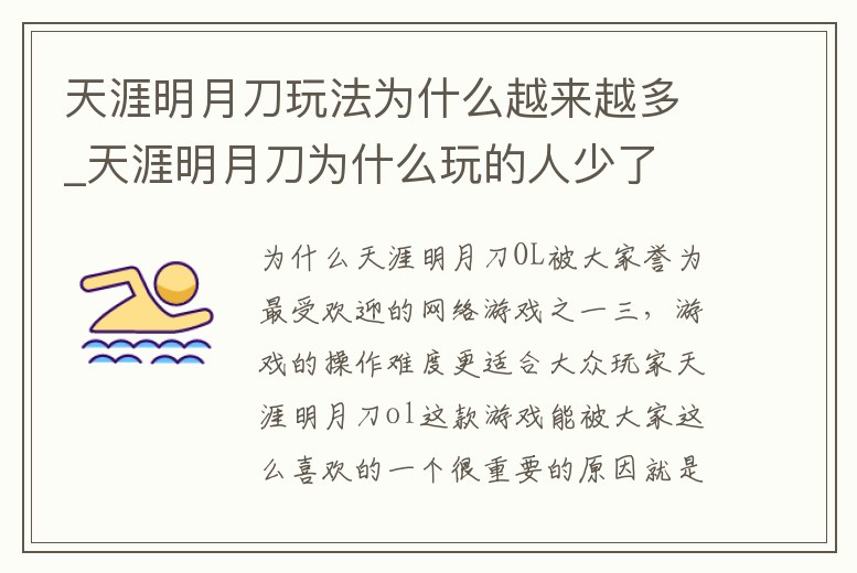天涯明月刀玩法為什么越來越多_天涯明月刀為什么玩的人少了