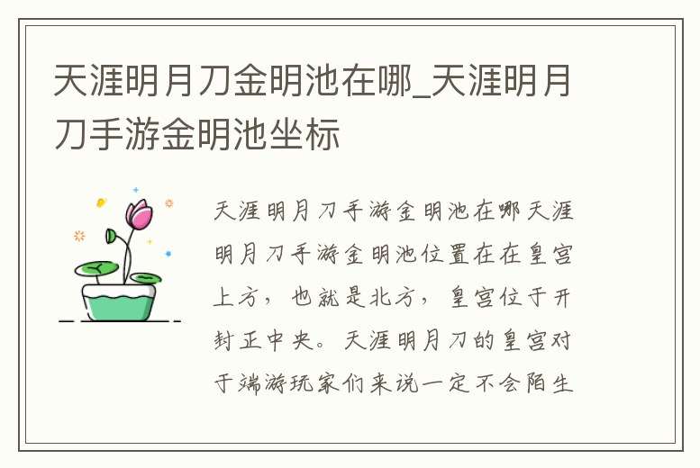 天涯明月刀金明池在哪_天涯明月刀手游金明池坐標