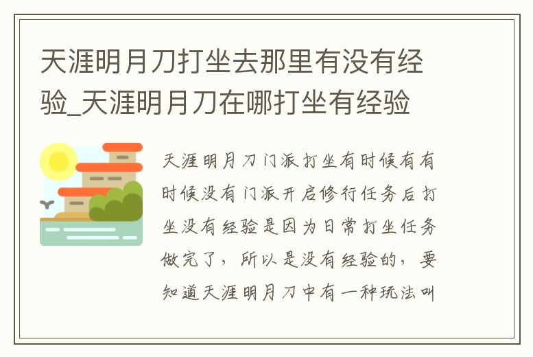 - 天涯明月刀打坐去那里有沒有經(jīng)驗_天涯明月刀在哪打坐有經(jīng)驗