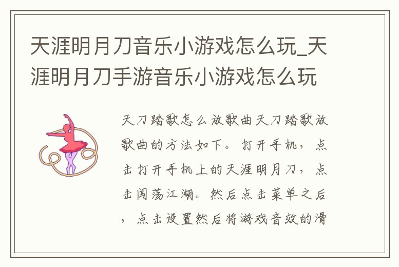 天涯明月刀音樂小游戲怎么玩_天涯明月刀手游音樂小游戲怎么玩