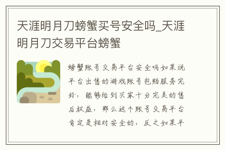 天涯明月刀螃蟹買號安全嗎_天涯明月刀交易平臺螃蟹