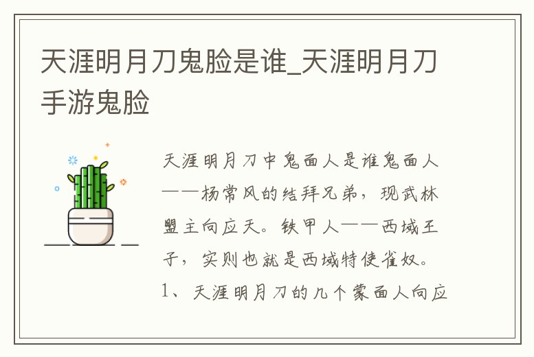 天涯明月刀鬼臉是誰_天涯明月刀手游鬼臉