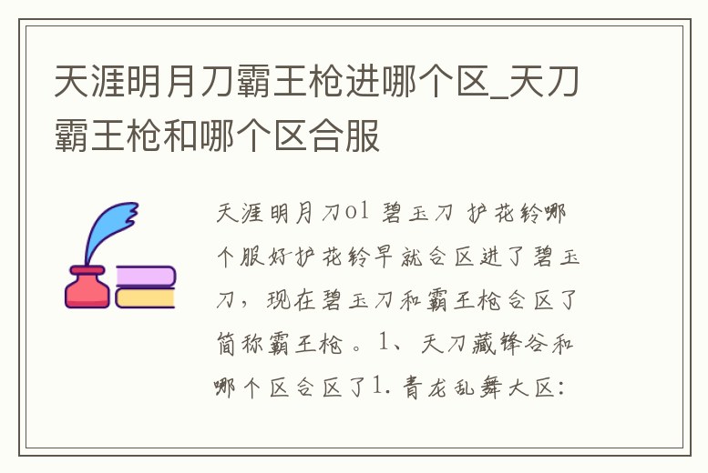 天涯明月刀霸王槍進哪個區_天刀霸王槍和哪個區合服