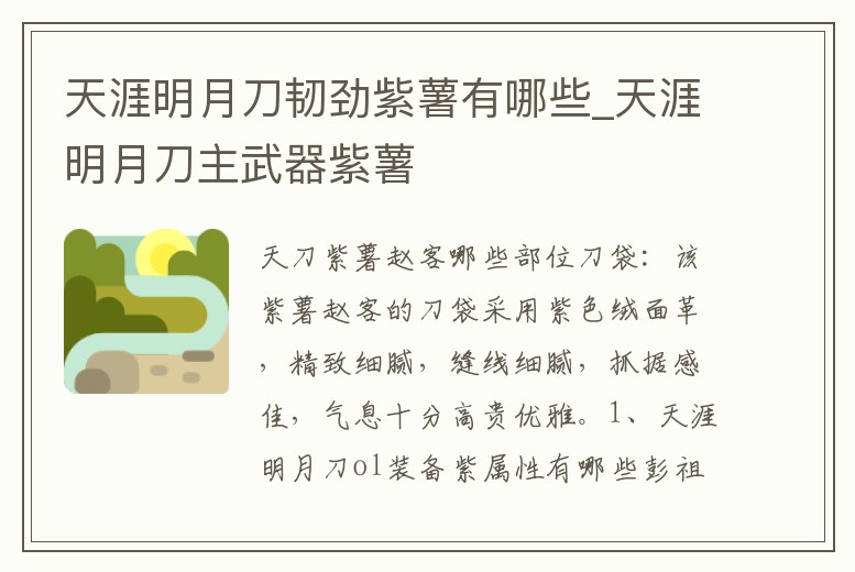 天涯明月刀韌勁紫薯有哪些_天涯明月刀主武器紫薯
