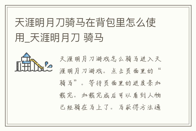 天涯明月刀騎馬在背包里怎么使用_天涯明月刀 騎馬