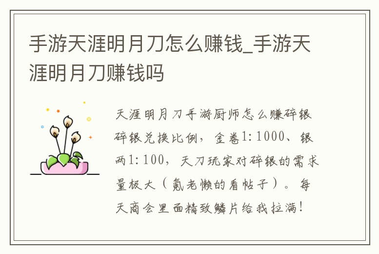 手游天涯明月刀怎么賺錢_手游天涯明月刀賺錢嗎