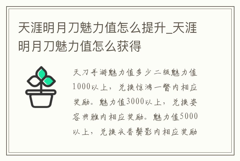 天涯明月刀魅力值怎么提升_天涯明月刀魅力值怎么獲得