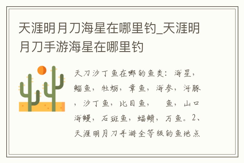 天涯明月刀海星在哪里釣_天涯明月刀手游海星在哪里釣