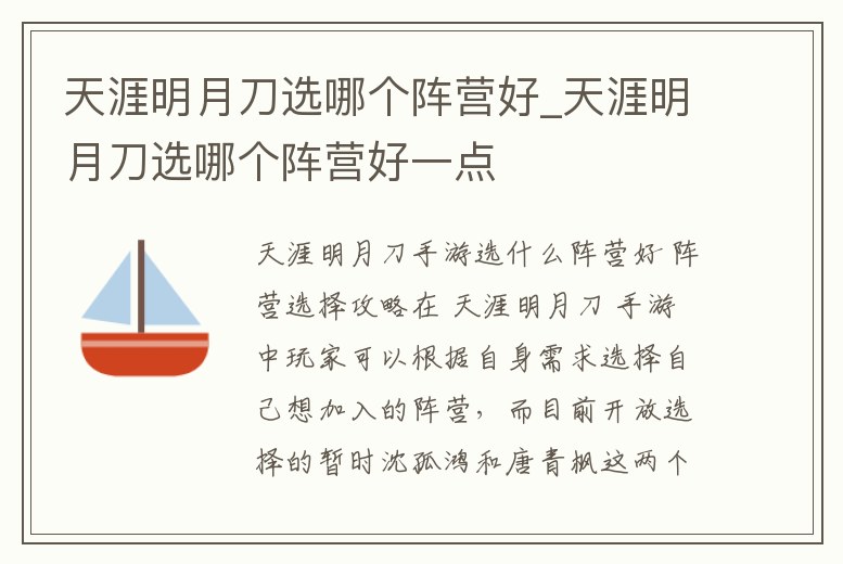 - 天涯明月刀選哪個陣營好_天涯明月刀選哪個陣營好一點