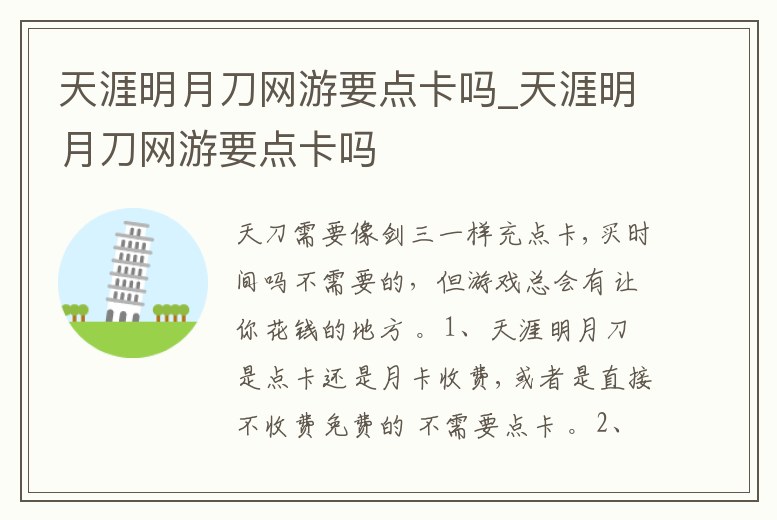 天涯明月刀網游要點卡嗎_天涯明月刀網游要點卡嗎