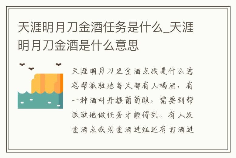 天涯明月刀金酒任務是什么_天涯明月刀金酒是什么意思